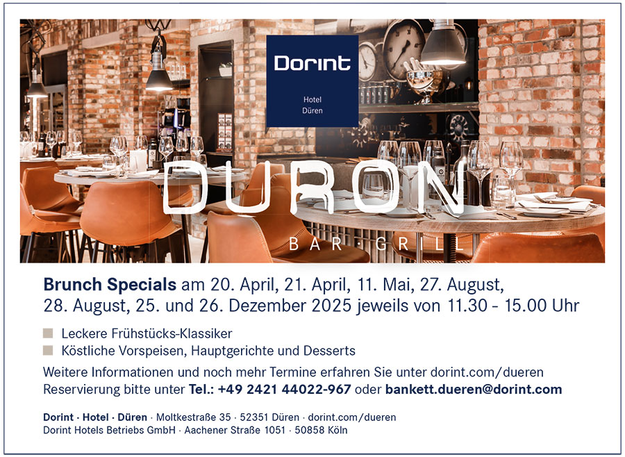 Seit Dezember 2018 hat in Dürens Innenstadt das neu erbaute Dorint Hotel seine Türen geöffnet. Das Hotel bietet nicht nur Übernachtungsmöglichkeiten mit 120 Doppelzimmern, sondern auch ein spannendes Gastronomiekonzept und ein angeschlossenes Konferenzzentrum.